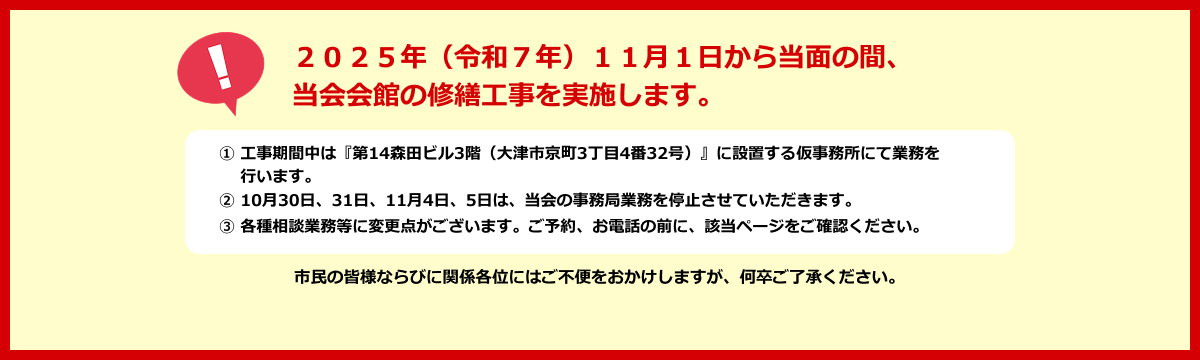 2025年(令和7年)11月1日から当面の間、当会会館の修繕工事を実施します。