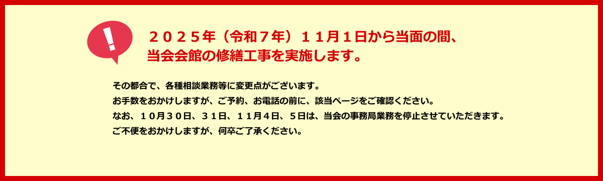 2025年(令和7年)11月1日から当面の間、当会会館の修繕工事を実施します。